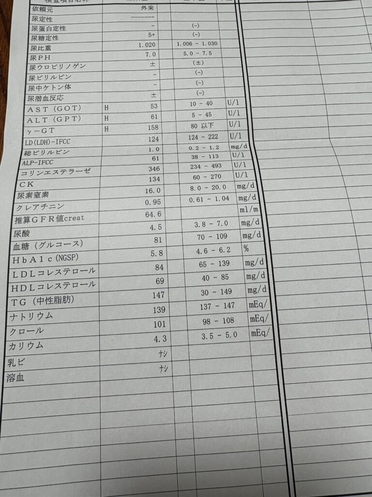 先日、2か月毎に行っている、血液検査の結果が出ました。