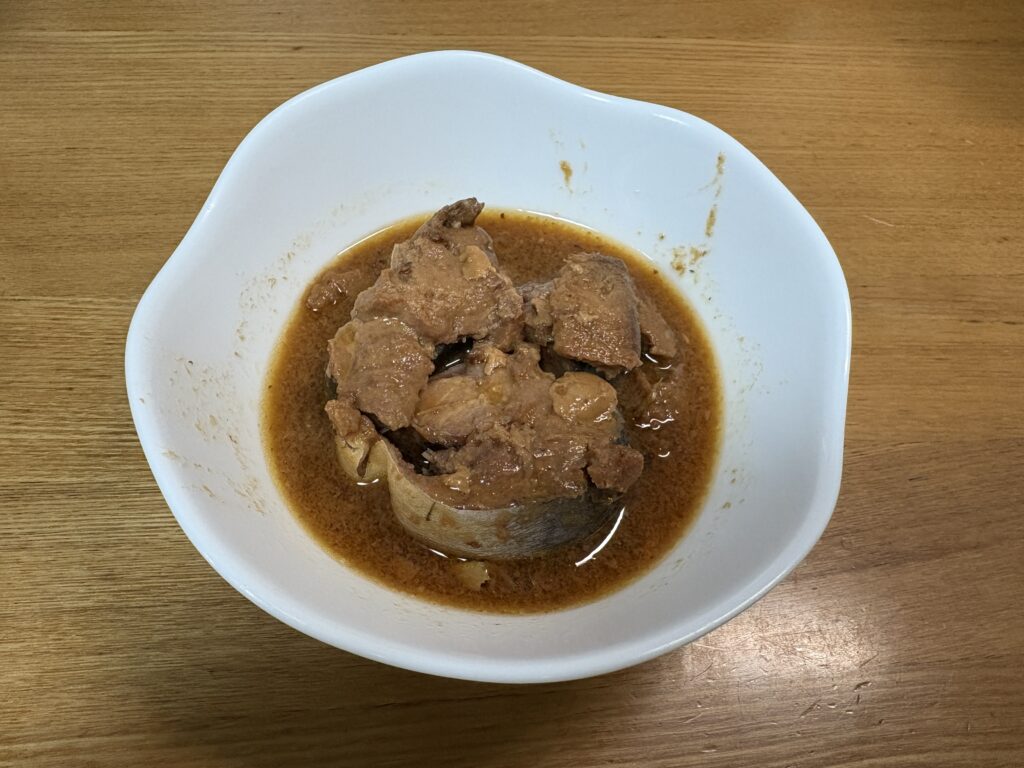 伊藤食品のあいこちゃん。24缶入りで¥4,550.-でした。ネットやYouTubeでよく出ているのは鯖の水煮缶ですが、わたしは鯖水煮が苦手で、その代わりに味噌煮缶を購入しました。