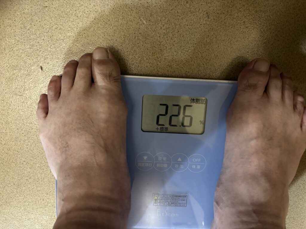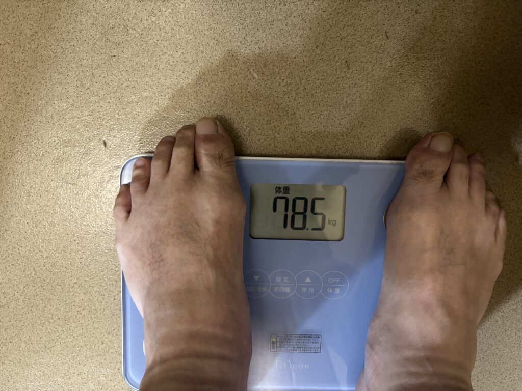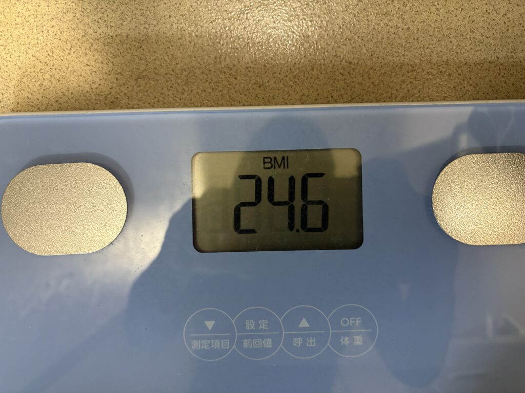週末の定期測定。体重78.5㎏(-0.3㎏)、BMI24.6(-0.1)、体脂肪22.6%(-0.3%)、内臓脂肪13.5レベル(-0.5レベル)。かっこ内は先週比です。ほぼ変わってないな。
